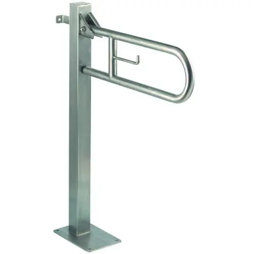 Вертикальный поворотный поручень на подставке с держателем рулона туалетной бумаги, устанавливаемый рядом с унитазом.