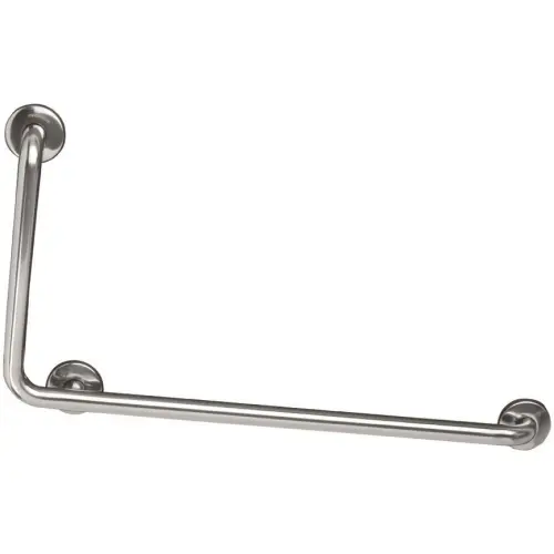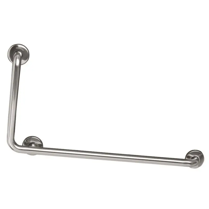 • Поручень, угол 90° влево, с защелкивающейся фланцевой крышкой, изготовлен из нержавеющей стали AISI 304, для душевых, ванн и раздевалок.