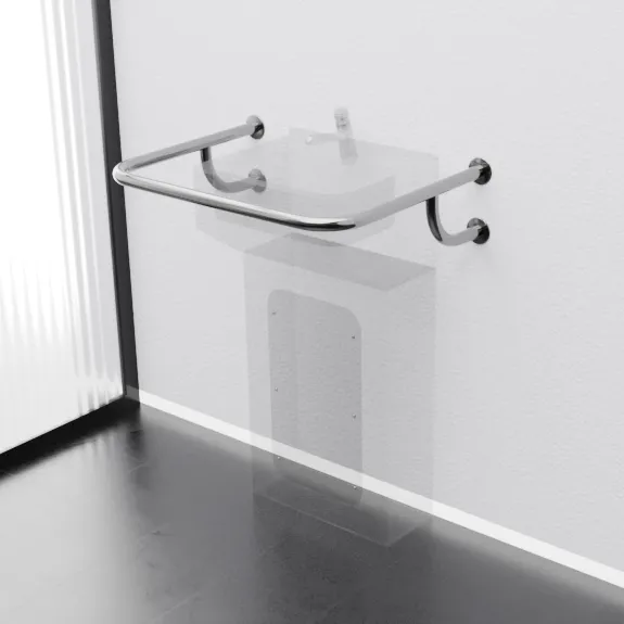 Монтаж за 10–15 мин: зафиксировать опоры в стене анкерами (подходит для бетона или плитки, без инструментов сверх дрели); эргономичная форма для удобного хвата. Уход: протирка мягкой тканью еженедельно, без абразивов для блеска; нержавейка устойчива к жесткой воде. Идеален для обустройства санузлов с акцентом на безопасность и стиль.