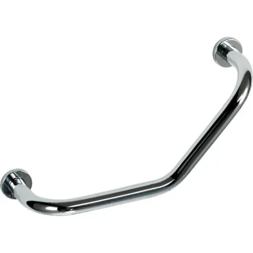 Поручень для ванн загнутый 400 мм из хромированной латуни предназначен для установки в ванных комнат, частных квартир и домов. Диаметр трубы поручня составляет всего 24 мм, и это вполне хорошее значение для нечастого использования, а вот для общественных материалов стоит обратить внимание на поручни диаметром 33 мм.