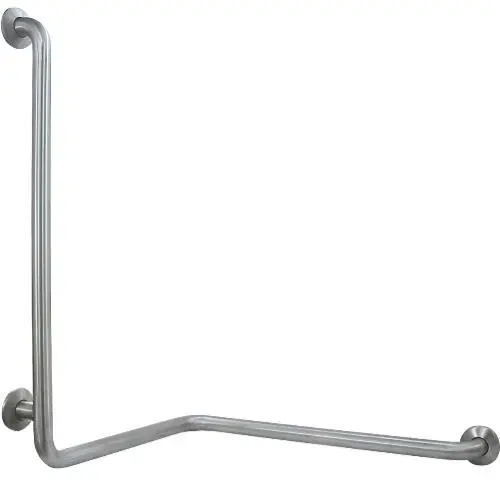 Поручень левый для крепления на стене с двойным углом 90º с тремя опорными точками. Предназначен для людей с ограниченными возможностями, матовый. Изготовлен из нержавеющей стали AISI 304. Рекомендуемая высота установки 70-75 см от пола Винты включены. Диаметр Ø 32 мм, толщина 1,5 мм. 38 мм от стены.