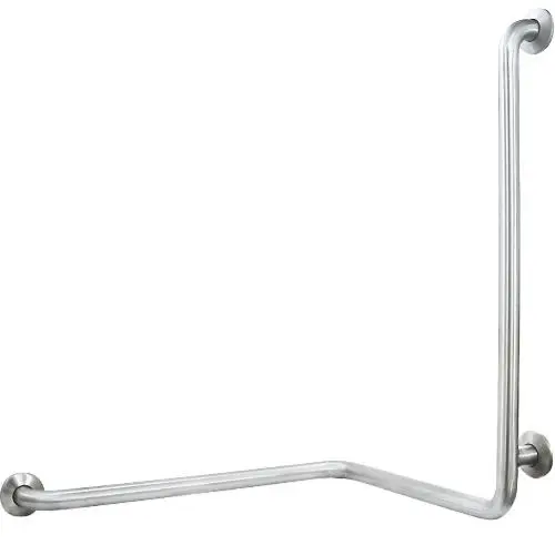 Поручень правый для крепления на стене с двойным углом 90º с тремя опорными точками. Предназначен для людей с ограниченными возможностями, глянцевый. Изготовлен из нержавеющей стали AISI 304. Рекомендуемая высота установки 70-75 см от пола Винты включены. Диаметр Ø 32 мм, толщина 1,5 мм. 38 мм от стены.