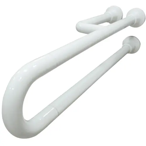 Поручень полукруглый неподвижный с тремя точками опоры 800 мм из алюминия покрытый нейлоном предназначен для мест мест где стерильность - не последнее слово. Нейлоновое покрытие очень успешно борется с бактериями, а алюминиевое основание гарантирует высокую защиту от бактерий