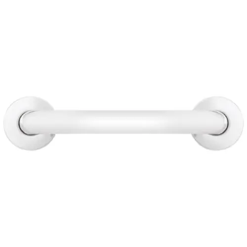Поручень прямой опорный для крепления на стену, белый. Подходит для поддержки в раковинах, туалетах, душах и ваннах. Предназначен для людей с ограниченными возможностями. Изготовлен из нержавеющей стали AISI 304. Две опорные точки. Длина (между центрами опор): 300 мм. Диаметр Ø 32 мм, толщина 1,5 мм. 38 мм от стены. Рекомендуемая высота установки 70-75 см от пола. Крепления включены в комплект.
