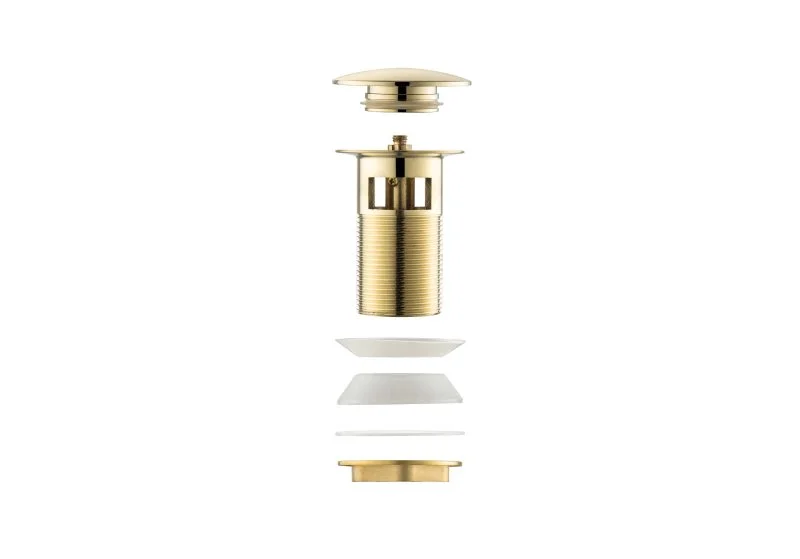 AQ6002BG сливной набор для раковины Push-open с переливом, крышка круглая, шлиф. золото