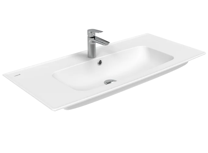 Модель предусматривает установку смесителя посередине. Такой вариант расположения смесителя придает раковине особую эстетику и позволяет использовать ее максимально удобно.
