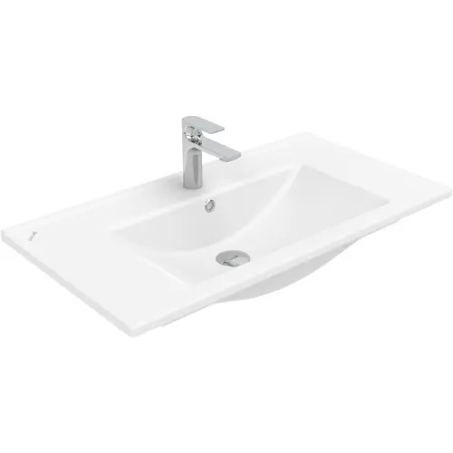 Подвесная или мебельная раковина Creavit Su 85 SU085-00CB00E-0000 выполнена в белом цвете из санфарфора и имеет покрытие с ионами серебра, которое подавляет образование бактерий на 99,9%. Размеры раковины составляют 85 х 45 х 17,4 см. Диаметр слива равен 4,5 см. Также имеется отверстие для перелива воды и отверстие под смеситель. Монтаж осуществляется путем крепления к стене или к тумбе. В комплекте поставки идут чаша раковины и крепления.