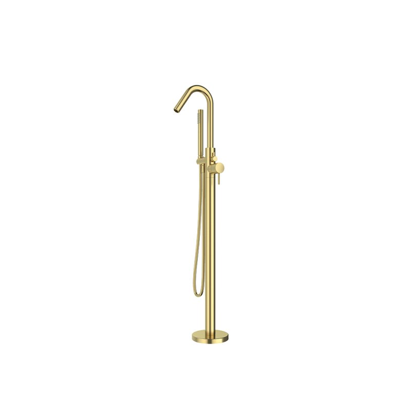 Напольный смеситель для ванны однорычажный с душевым комплектом ODISEA 398503DOC золото брашированное