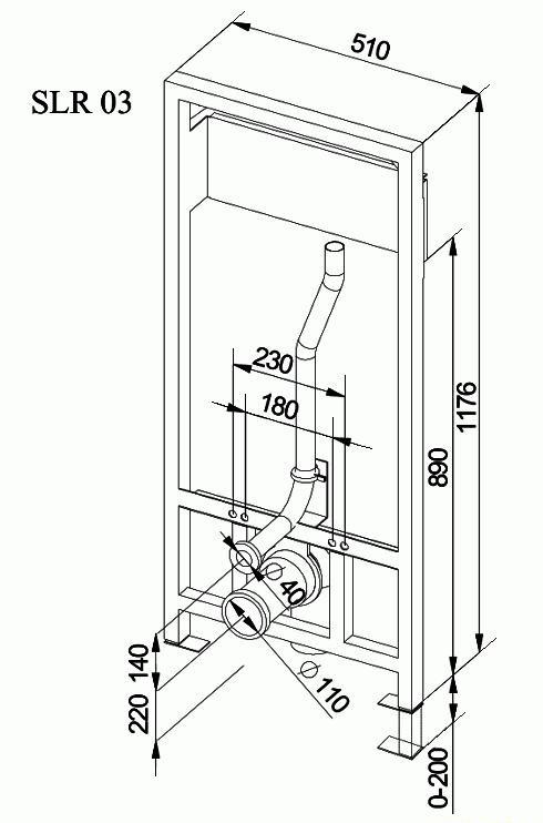 Система инсталляции SLR03 (08030) предназначена для крепления подвесных унитазов с расстоянием между монтажными отверстиями 180 или 230 мм, она устанавливается совместно с автоматическим напорным смывным устройством SLW01NK. Смывное устройство следует располагать так, чтобы при открытой крышке унитаза датчик не загораживался. Ножки рамы имеют бесступенчатую регулировку высоты. Рама покрыта антикоррозионным составом. Спецификация поставки: -монтажная рама - 1 шт.; -угловой фановый патрубок 90?, ?100 мм - 1 шт.; -прямой фановый патрубок с уплотнительной манжетой, ?90 мм, 170 мм - 1 шт.; -технологическая заглушка для фановой трубы - 1 шт.; -угловой патрубок с уплотнительной манжетой для подключения воды к унитазу - 1 шт.; -набор крепежа для установки инсталляции - 1 компл.; -набор крепежа для установки унитаза - 1 компл. Изделие упаковано в картонную коробку с заводской маркировкой.