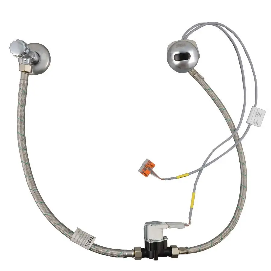 ИК-датчик – 1 шт.; -распылительная головка с уплотнительной прокладкой – 1 шт.; -крепёж для установки – 1 компл.; -латунный фитинг – 1 шт.; -электромагнитный клапан – 1 шт.; -угловой вентиль с грязевым фильтром – 1 шт.; -декоративная розетка (наружный диаметр 55 мм) – 1 шт.; -гибкая подводка – 2 шт.; -инструкция по установке – 1 шт.