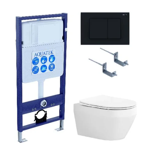 Инсталляция для унитаза Aquatek INS-0000012, унитаз подвесной Aquatek Лея AQ1199-00 с крышкой soft-close, панель смыва Aquatek KDI-0000012, комплект крепления Aquatek KKI-0000002