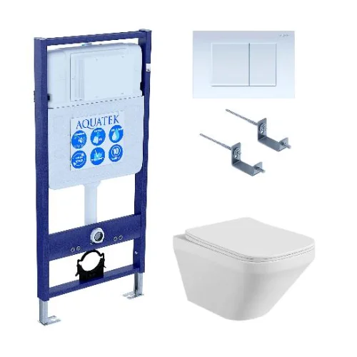 Инсталляция для унитаза Aquatek INS-0000012, унитаз подвесной Aquatek Лира AQ1155-00 с крышкой soft-close, панель смыва Aquatek KDI-0000009, комплект крепления Aquatek KKI-0000002