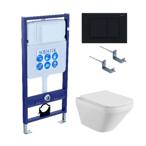 Инсталляция для унитаза Aquatek INS-0000012, унитаз подвесной Aquatek Лира AQ1155-00 с крышкой soft-close, панель смыва Aquatek KDI-0000012, комплект крепления Aquatek KKI-0000002
