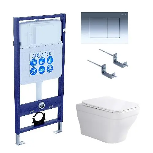 Инсталляция для унитаза Aquatek INS-0000012, унитаз подвесной Aquatek Амадео AQ1163-00 с крышкой soft-close, панель смыва Aquatek KDI-0000010, комплект крепления Aquatek KKI-0000002
