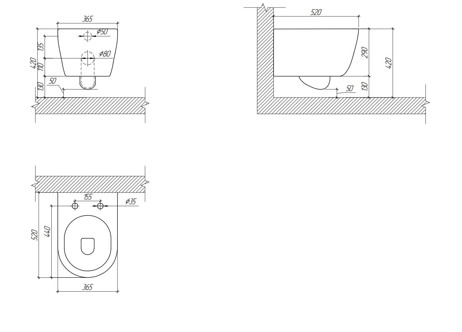 ⦁ Крепеж KKI-0000002: комплект стандартных аксессуаров для надежной фиксации унитаза.
