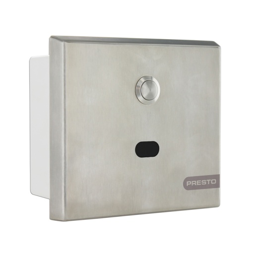 Электронный сенсорный клапан смыва PRESTO Sensao 8600 N 55440: Встраиваемый сетевой механизм для писсуаров с кнопкой и хромированной панелью для интенсивных зон
