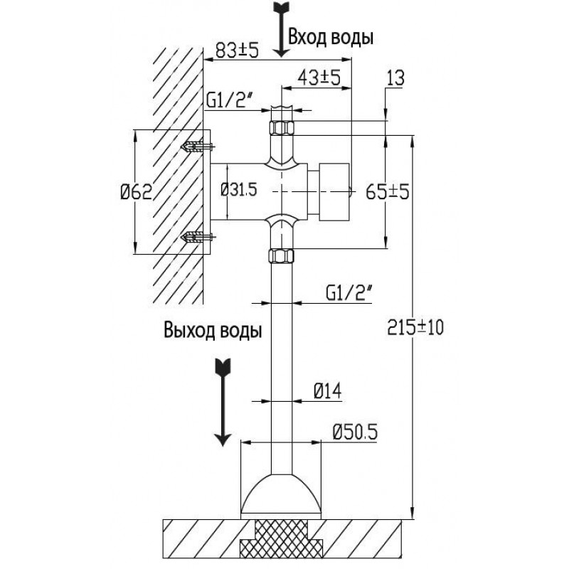 Подведение воды к крану выполняется с верхней части устройства рядом со стеной, используется наружная резьба типа G1/2.