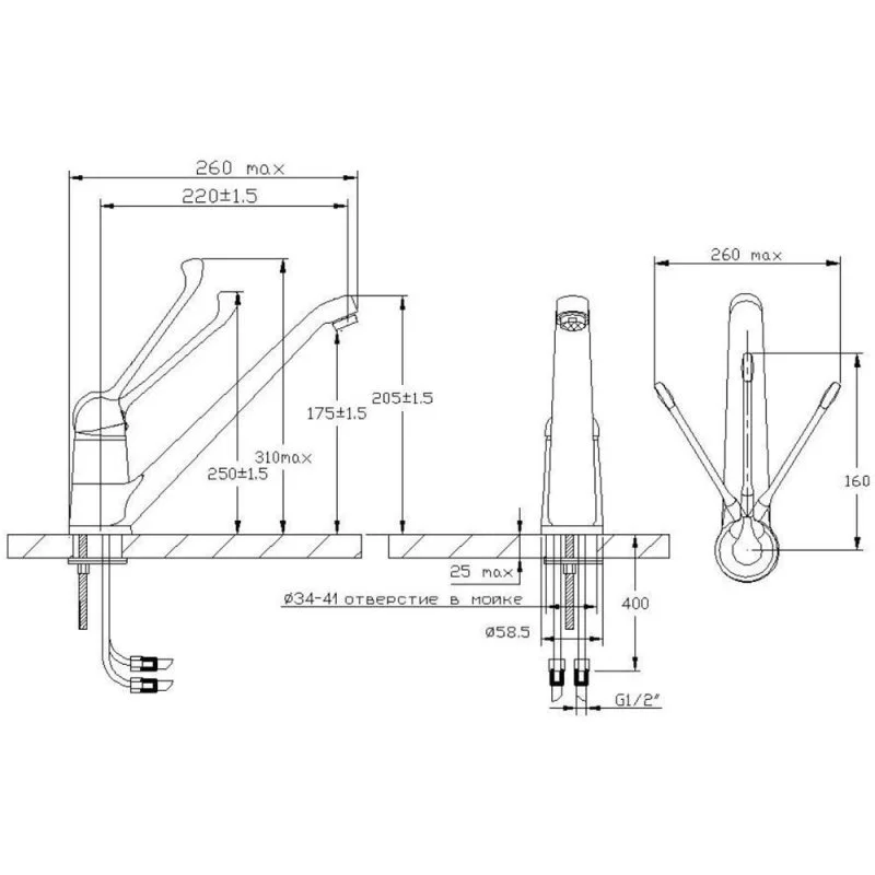 В комплекте | корпус смесителя в сборе – 1 шт.; уплотнительное кольцо – 1 шт.; подводка воды длиной 40 см – 2 шт.; шпилька – 1 шт.; скоба резиновая – 1 шт.; скоба металлическая – 1 шт.; гайка – 1 шт.; руководство по эксплуатации с гарантийным талоном – 1 шт. |