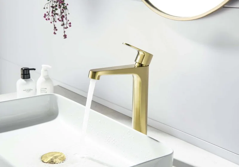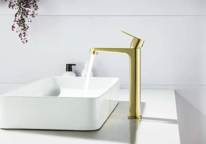 Смеситель для раковины AQ1204BG ОБЕРОН высокий 240, шлифованное золото — расширенное описание
