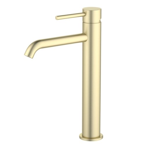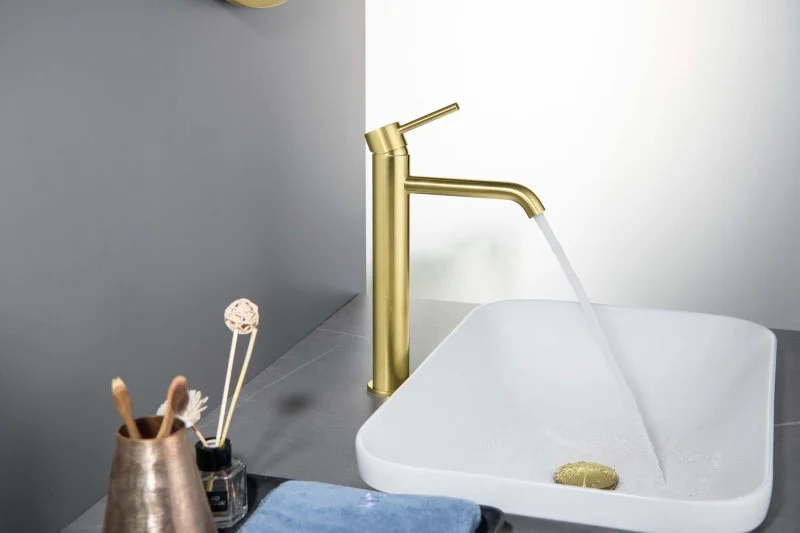 AQ1304BG ЕВРОПА смеситель для раковины высокий 215, без донного клапана, шлифованное золото