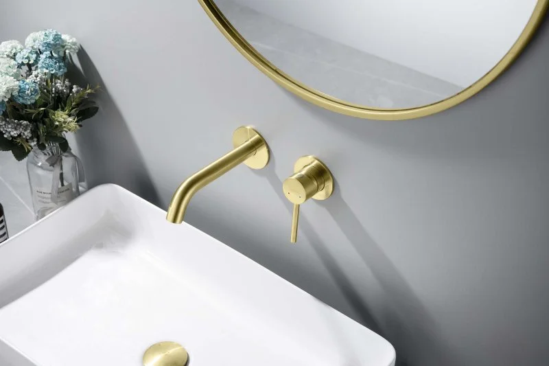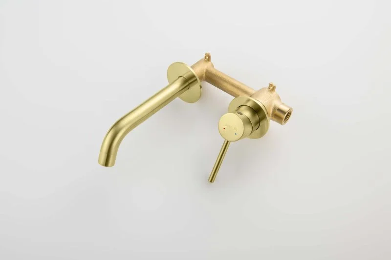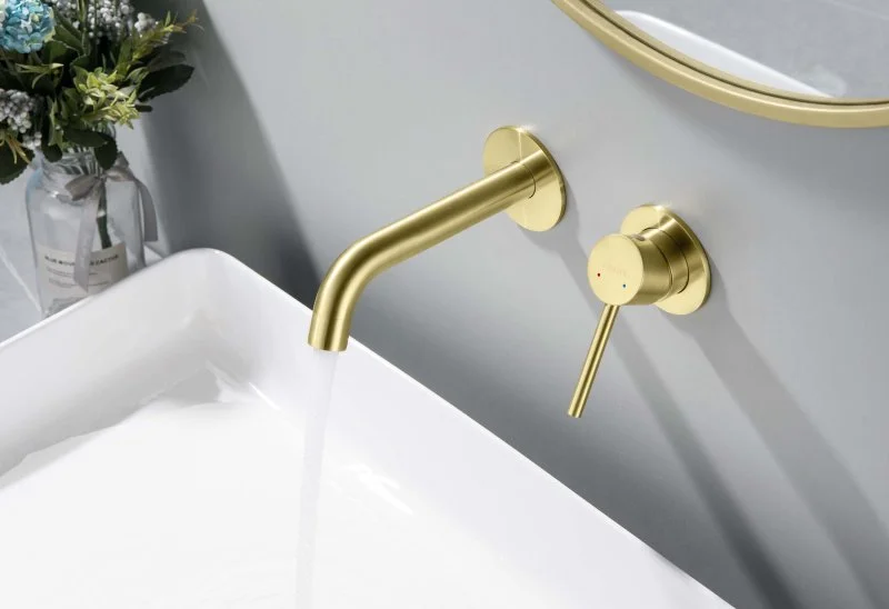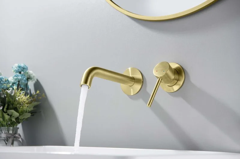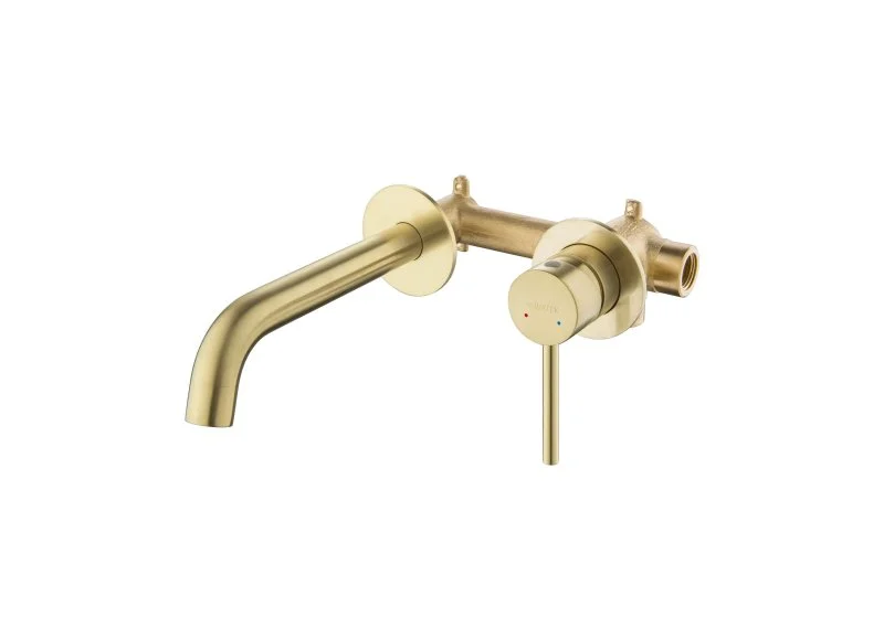 AQ1313BG ЕВРОПА смеситель для раковины настенный 2 отв. (внешняя и скрытая часть), шлиф. золото
