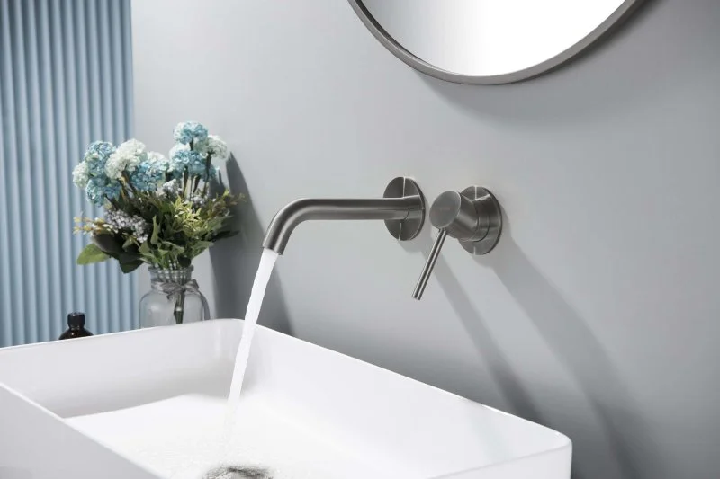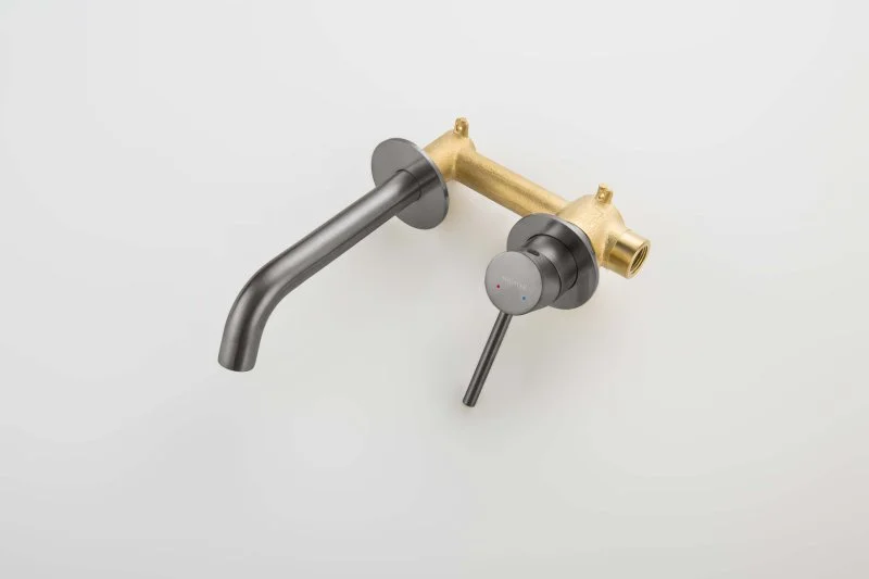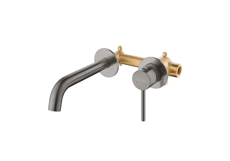 AQ1313BGM ЕВРОПА смеситель для раковины настенный 2 отв. (внешняя и скрытая часть), оружейная сталь