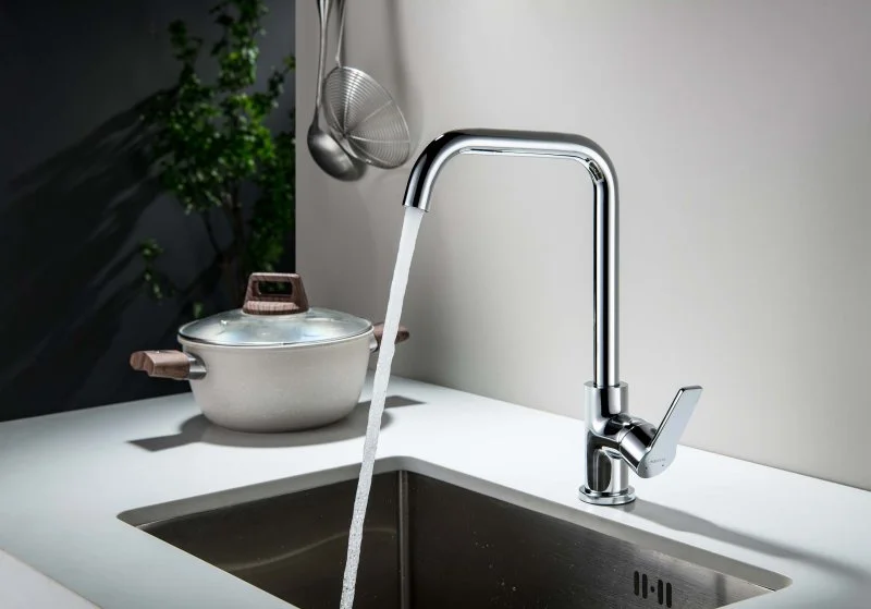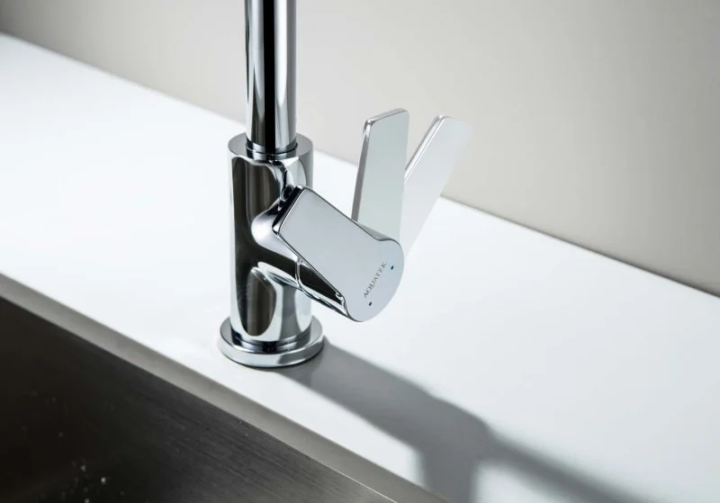 Смеситель для кухни Aquatek ЛУГАНО AQ1781CR, квадратный излив, хром Назначение и область применения Смеситель AQ1781CR ЛУГАНО оптимален для современных кухонь в жилых и коммерческих помещениях, где важны надежность, эргономика и стиль. Технические характеристики ⦁ Материал корпуса: латунь с хромированным покрытием — устойчива к коррозии и легко очищается. ⦁ Излив: квадратный, поворотный, угол поворота 360° — удобно для работы с большими мойками и посудой. ⦁ Управление: однорычажное, керамический картридж — точная регулировка температуры и напора воды. ⦁ Монтаж: на мойку или столешницу, 1 монтажное отверстие диаметром 35 мм — совместим с большинством кухонных моек. ⦁ Подключение: гибкие шланги 600 мм, G 1/2". ⦁ Размеры: высота излива 271 мм, длина излива 206 мм, общая высота 347 мм. Преимущества и отличия ⦁ Современный минималистичный дизайн с акцентом на геометрию — подчеркивает стиль кухни. ⦁ Износостойкое покрытие и латунный корпус гарантируют долгий срок службы. ⦁ Поворотный излив и эргономичная ручка — максимальное удобство при эксплуатации. ⦁ Полная совместимость с российскими и европейскими системами водоснабжения. Особенности установки Монтаж не требует специальных навыков, все необходимые элементы для быстрой установки входят в комплект.