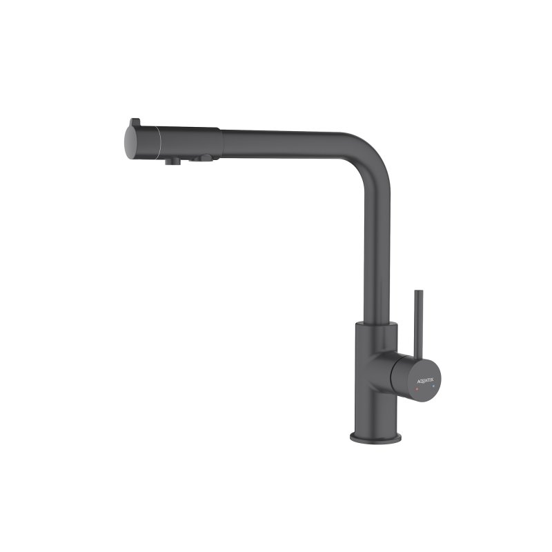 Смеситель для кухни с подключением к фильтру питьевой воды AQUATEK, матовый черный AQ1386MB ЕВРОПА