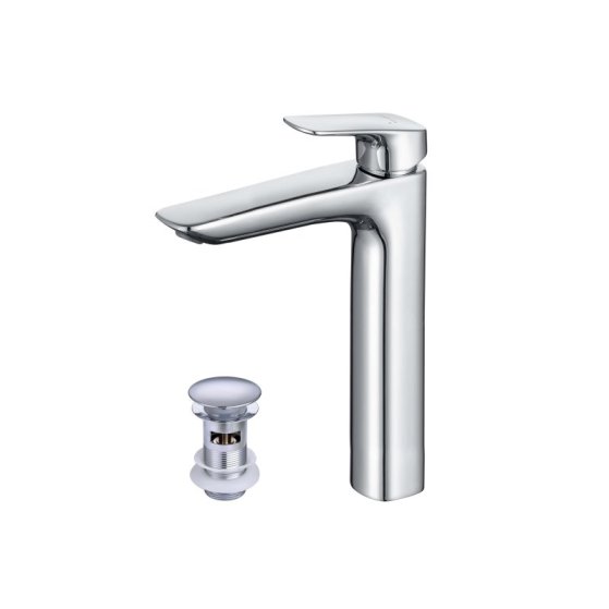 оснащен высоким изливом, удобен для мытья крупных предметов; однорычажная система регулировки силы струи и температуры воды; цельный корпус смесителя снижает вероятность протечек; легкая очистка аэратора; донный клапан клик клак из нержавеющей стали марки sus 304 в цвет смесителя в комплекте; оптимальная длинна подводки;