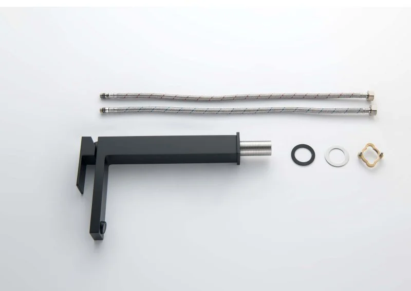 Современный однорычажный смеситель без донного клапана из латуни с матовым черным покрытием. Картридж 35 мм обеспечивает плавную регулировку воды, подходит для стандартных раковин, легко монтируется.