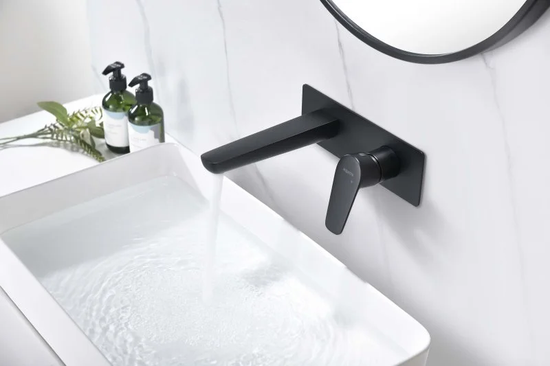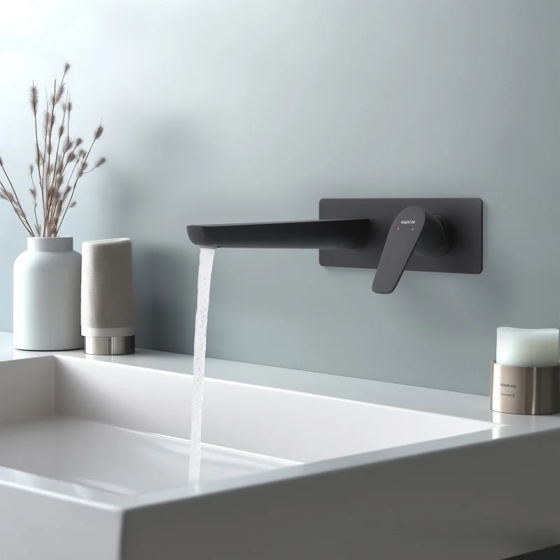 Смеситель для раковины настенный (внешняя и скрытая часть) AQUATEK, матовый черный AQ1113MB БЕТТА