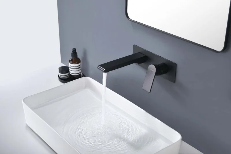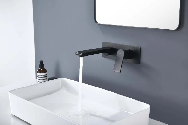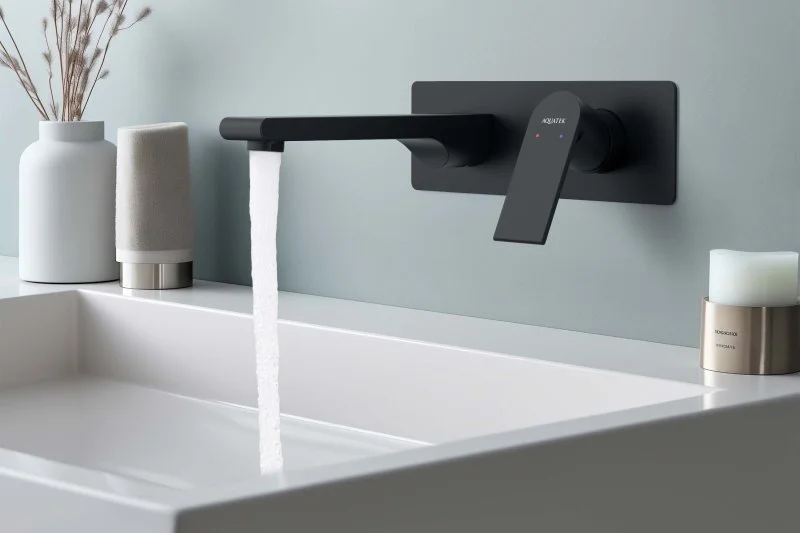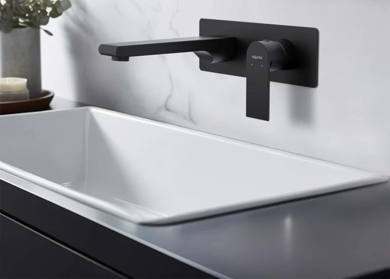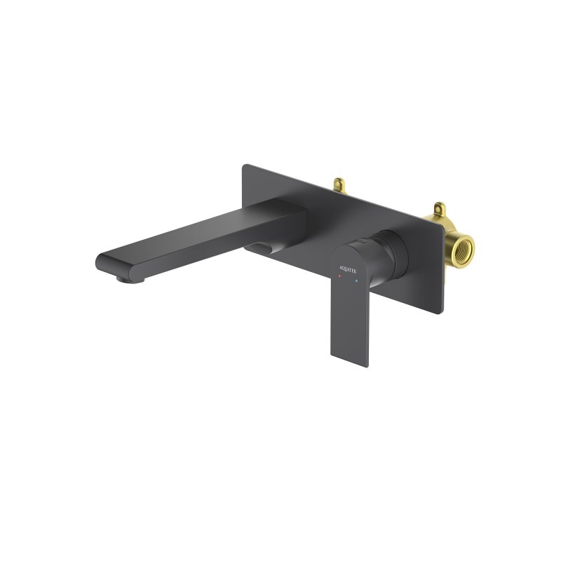 Смеситель для раковины настенный (внешняя и скрытая часть) AQUATEK, матовый черный AQ1413MB ЛИРА