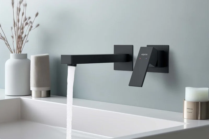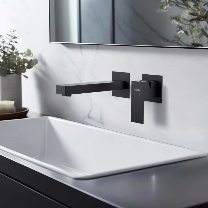 Смеситель для раковины настенный (внешняя и скрытая часть) AQUATEK, матовый черный AQ1613MB ЛИБРА