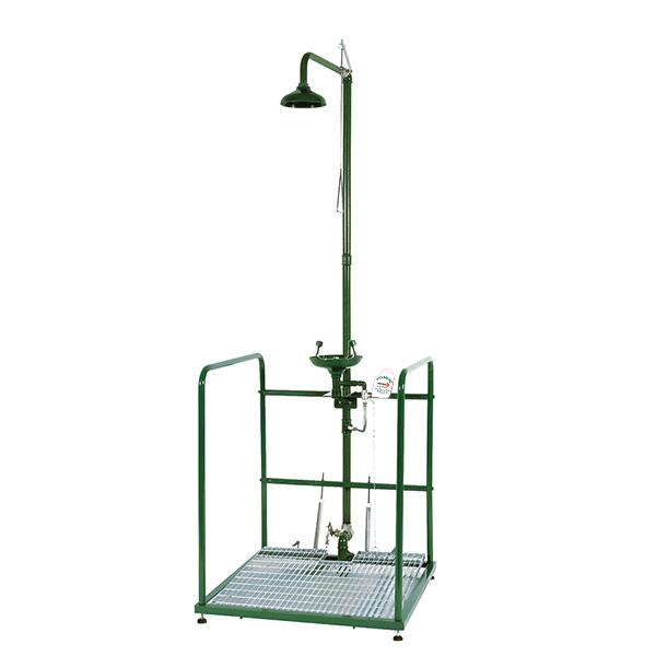 Эргономичная комбинированная система аварийного душа с интегрированным устройством для немедленного очищения глаз выполнена из прочного полипропилена. Она рекомендуется для монтажа на предприятиях химической промышленности, фармацевтических заводах, исследовательских центрах и любых других зонах, связанных с высоким риском ожогов кожи, слизистых оболочек и повреждением глаз вследствие влияния огня, агрессивных жидкостей, порошкообразных химических компонентов или радиационного излучения. Успешная эксплуатация обеспечивается простой системой запуска, управляемой удобным треугольным рычагом или надежной ножной педалью.