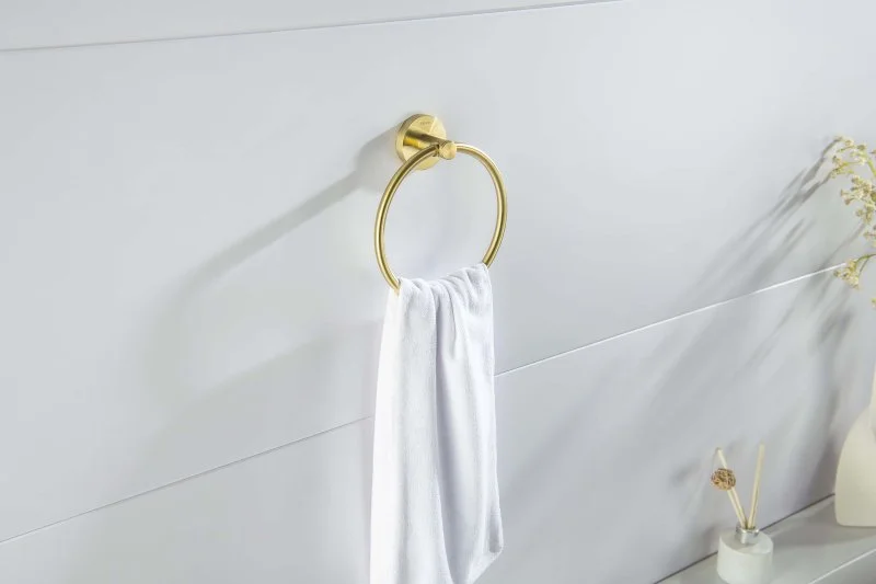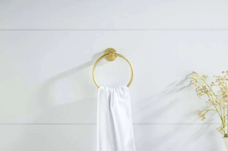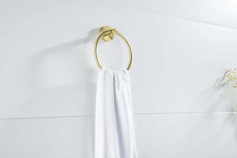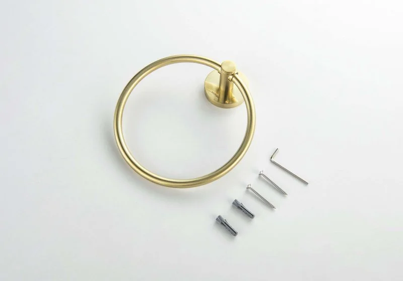 Полотенцедержатель кольцо из коллекции ЕВРОПА отличается премиальным шлифованным золотым покрытием на латуни, которое обеспечивает износостойкость и устойчивость к коррозии. Крепление скрытое, закрепляется на стену шурупами, что обеспечивает ровную и стильную установку без визуальных выступов. Диаметр кольца продуман для удобства использования, оптимален для помещений с дизайнерским решением в теплых тонах и классической эстетикой.