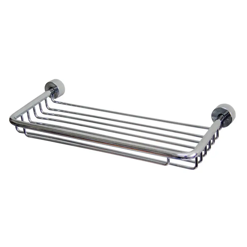 Решетка для мыльницы формата 265x107 мм, с хромированными латунными стержнями Ø 8 и 3 мм, с толщиной защиты 9,4 мм никель + 0,40 мм хром, для настенного крепления с помощью двух точек крепления.