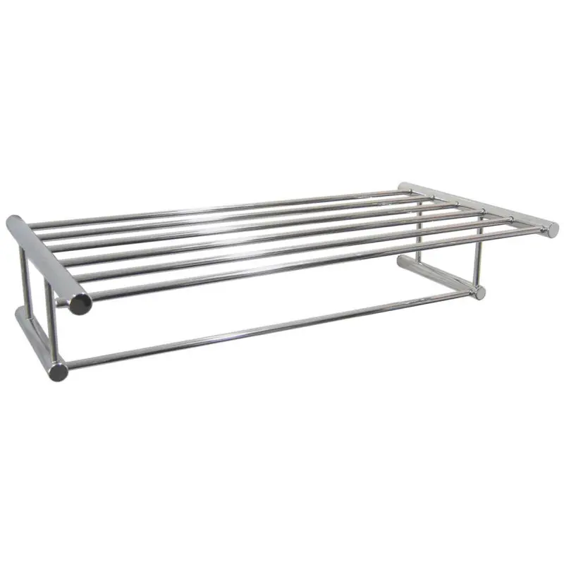Полка для полотенец с вешалкой для настенного монтажа, изготовленная из нержавеющей стали AISI 304 с блестящей отделкой. Полка состоит из шести бесшовных прутьев диаметром 8 мм из нержавеющей стали AISI 304, толщиной 0,8 мм и двух кронштейнов из нержавеющей стали AISI 304 диаметром 18 мм, толщиной 0,8 мм. Эта полка для полотенец с плавными чистыми линиями, соответствующими современным ванным комнатам, подходит для гостиничного сектора, для оснащения ванных комнат в гостиничных номерах. Конструкция из нержавеющей стали обеспечивает долговечность и устойчивость к ржавчине. Не имеет съемных элементов. Обычно комплектуется дозатором для мыла из нержавеющей стали и сушилкой для рук. Винты и дюбели для установки на стену прилагаются.
