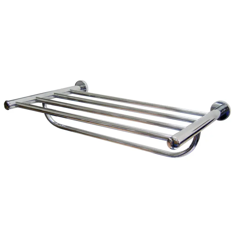 Полка для полотенец со штангой из хромированной латуни, толщиной 1 мм, светлая отделка, диаметр 25 мм, с толщиной защиты 9,8 мкм никель + 0,40 мкм хром, для настенного монтажа. -Полка состоит из четырех стержней из хромированной латуни, блестящая отделка, диаметр 14,5 мм, толщина 1 мм. Подходит для гостиничного сектора, для оснащения ванных комнат в гостиничных номерах. Модель подходит для общественного пользования. Не имеет съемных элементов. Обычно комплектуется кольцом или поручнем из хромированной латуни. Хромированные латунные защелкивающиеся фланцевые крышки с толщиной защиты 9,8 мкм никеля + 0,40 мкм. Прессованные монтажные фланцы. Каждый фланец имеет 3 отверстия под винты диаметром 5 мм для крепления к стене.