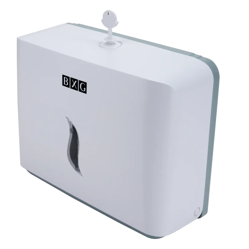 BXG-PD-8025 NEW – предназначен для дозированной подачи листовых бумажных полотенец. Подходит для использования в туалетных комнатах средней и большой проходимости.