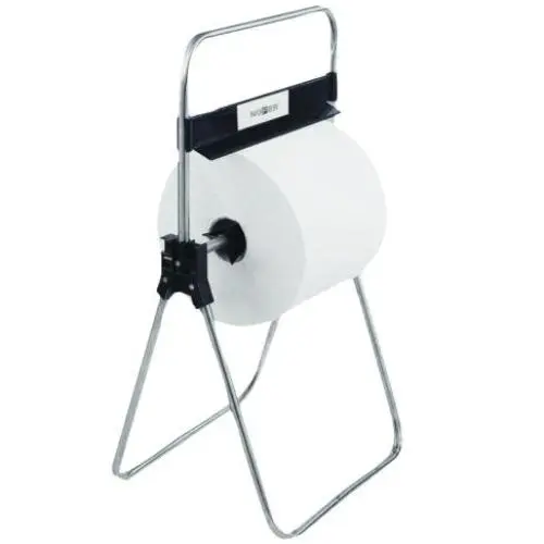 Диспенсер для бумаги в рулонах. Промышленный напольный изготовлен из нержавеющей стали AISI 304. Напольная катушка для бумаги в рулонах разработана для использования в пищевой промышленности, а также может употребляться при клининге. Держатель может быть использован совместно с бумагой практически любых рулонов. Высокая мобильность держателя делает его эксплуатацию очень удобной. Подобное оборудование разработана для ресторанных кухонь или использования при клининге торговых и бизнес-центров