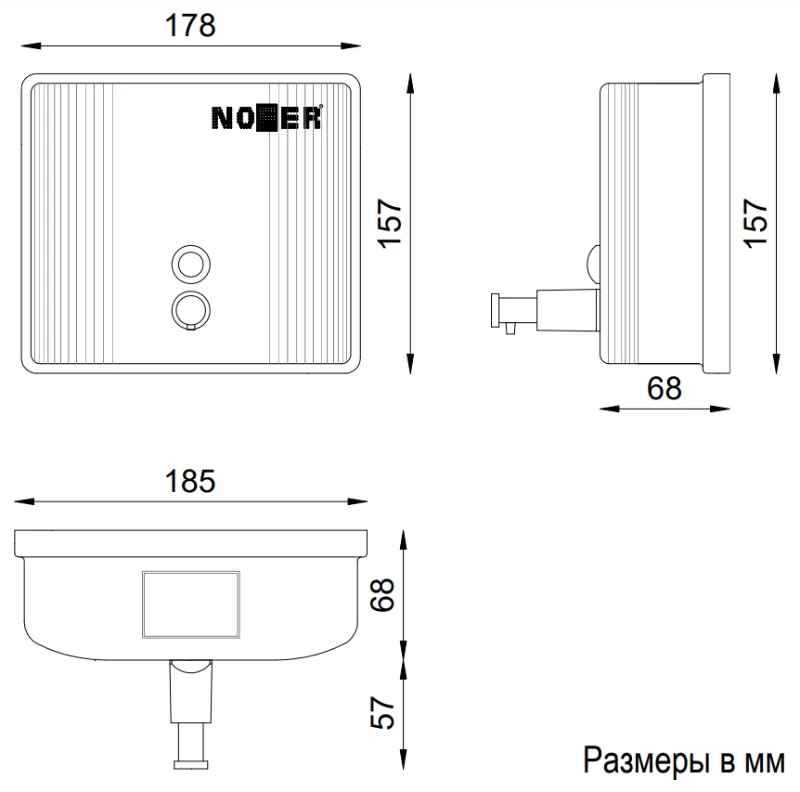 Настенный дозатор с кнопкой в прочном антивандальном корпусе из нержавеющей стали. Емкость квадратной формы на 1400 мл. …