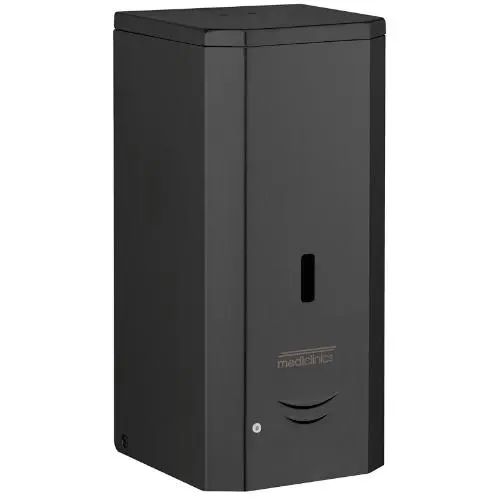 Автоматический настенный дозатор жидкого мыла максимальной емкостью 1 л, изготовленный из нержавеющей стали AISI 304 толщиной 0,8 мм. Эти дозаторы выпускаются в четырех вариантах отделки (белый, черный, яркий и сатиновый) и имеют функциональный, прочный и модный дизайн, соответствующий новой линейке аксессуаров для ванных комнат Mediclinics. Благодаря этому дозатор для мыла идеально впишется в любое пространство. Подходит для помещений с высокой проходимостью и для общественного пользования. Индикатор уровня расположен в передней части дозатора. Он постоянно показывает уровень мыла, находящегося в дозаторе. Работает от 6 щелочных батареек типа АА (в комплект поставки не входят) или, как вариант, от сети. Дозирует жидкое мыло или гели для дезинфекции рук. Рекомендуется использовать жидкое мыло или гель для дезинфекции рук со следующими характеристиками: Максимальное содержание спирта 80% Плотность от 0,9 до 1,35 кг/дм3 Вязкость от 500 до 2 500 сПз. Не допускается использование мыла, содержащего метанол, хлор, а также твердые или абразивные частицы. Дозаторы сертифицированы CE в соответствии с нормами электробезопасности (LVD) и электромагнитной совместимости (EMC) Винты и пластиковые дюбели для крепления к стене входят в комплект поставки.