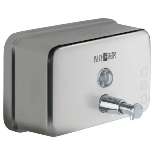 Дозатор для мыла горизонтальный. Компактный, прочный и очень устойчивый к ржавчине. С внутренним пластиковым резервуаром для оптимального сохранения мыла. Нажимной.