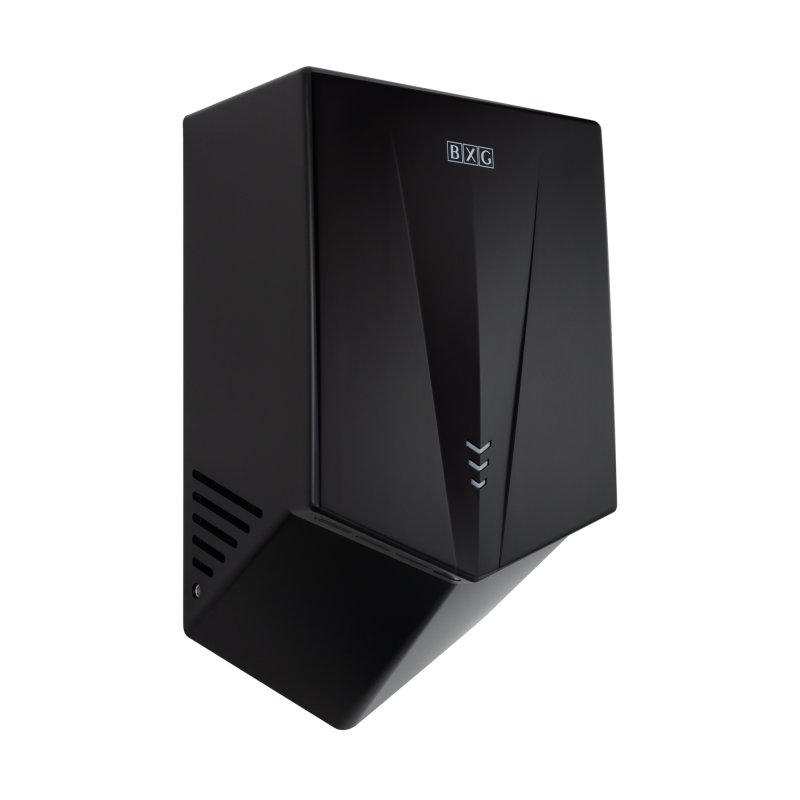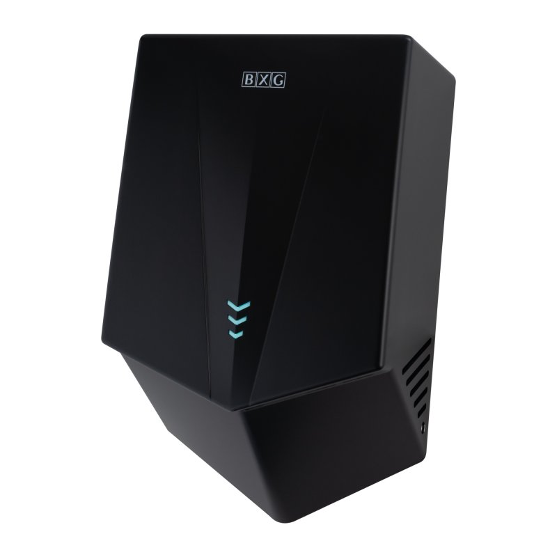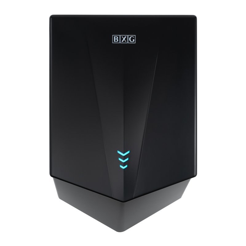 BXG-JET-5700D — ультрасовременная мощная сушилка для рук, выполненная из прочного ABS-пластика в стильном матовом черном цвете. Её главная фишка — система ультрафиолетовой дезинфекции воздуха и продвинутая многоуровневая фильтрация: встроенный НЕРА-фильтр задерживает практически все бактерии, вирусы и пыль, а УФ-LED-обработка (395–405 нм) эффективно уничтожает микроорганизмы, при этом оставаясь безопасной для пользователей.