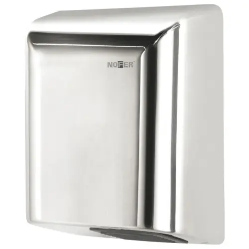 Сушилка для рук NOFER, с корпусом из нержавеющей стали AISI 304, глянцевая отделка, горячий воздух приводится в движение электронным датчиком, мощность 2050 Вт и температура 60ºC. Скорость вращения двигателя 2800 об/мин.