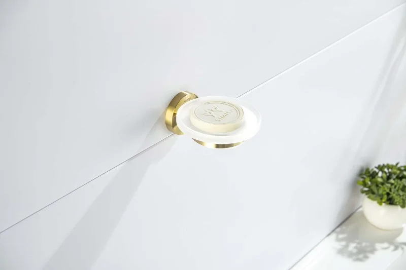 Материал - латунь Мыльница из матового стекла Держатель из нержавейки Упаковано в белую коробку Размеры: 122*110*54мм