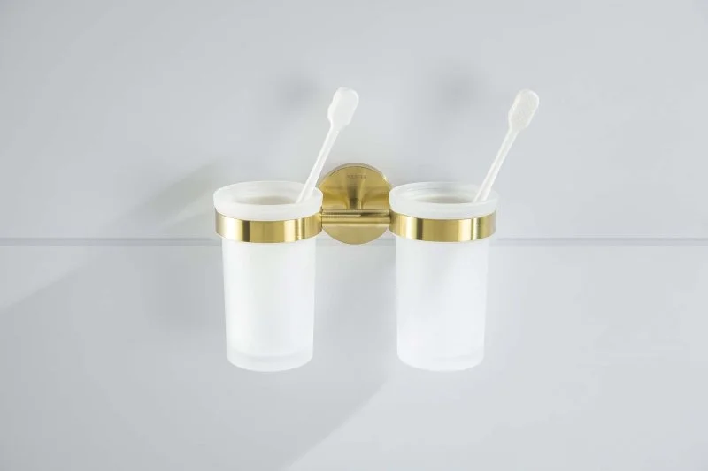 AQ4117BG ЕВРОПА стакан с держателем двойной, шлиф. золото