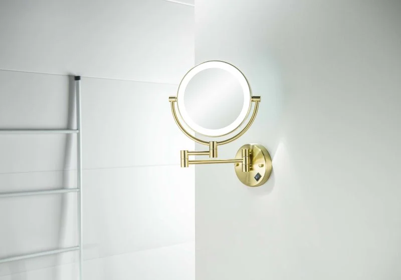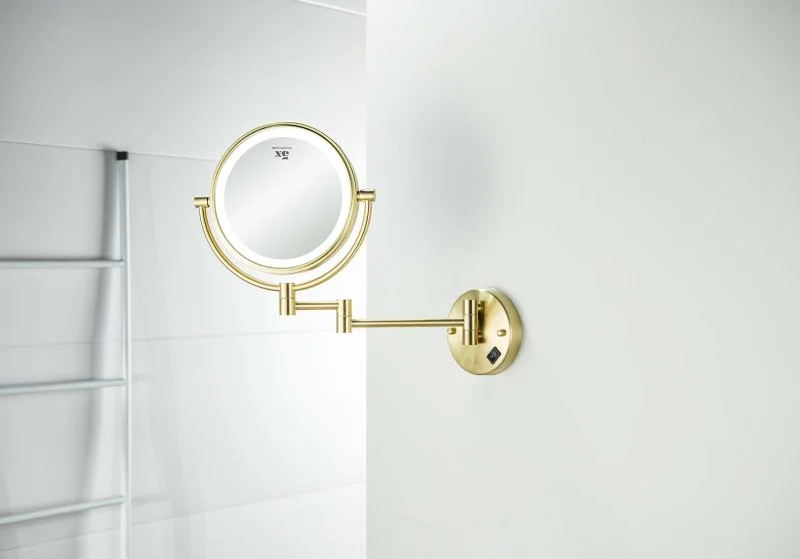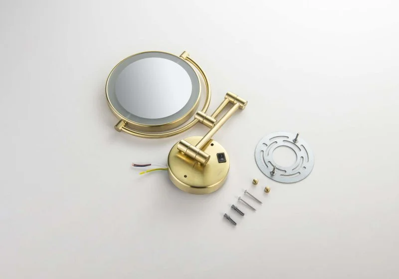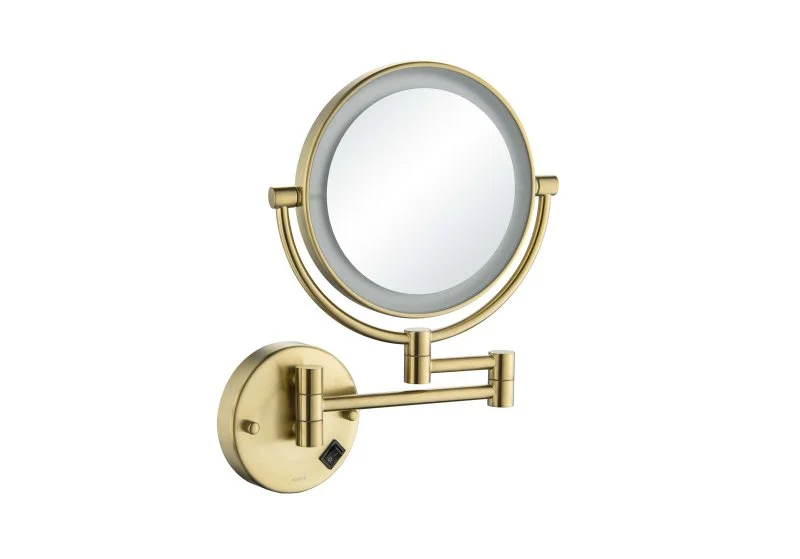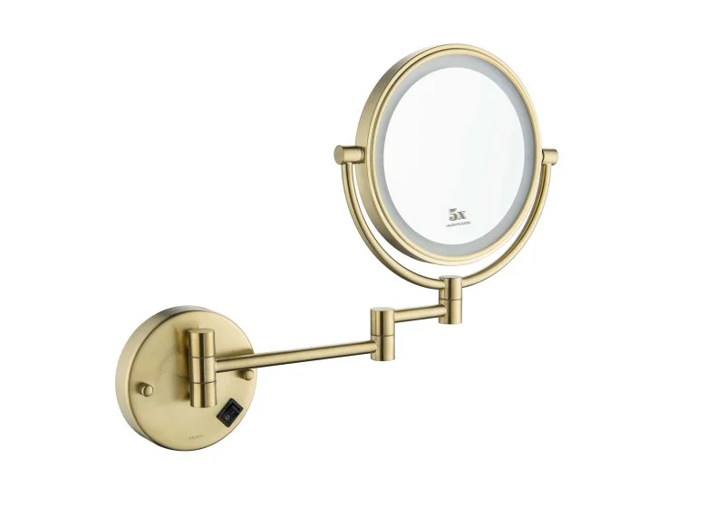 AQ4912BG зеркало косметическое настенное с подсветкой 5х, шлиф. золото