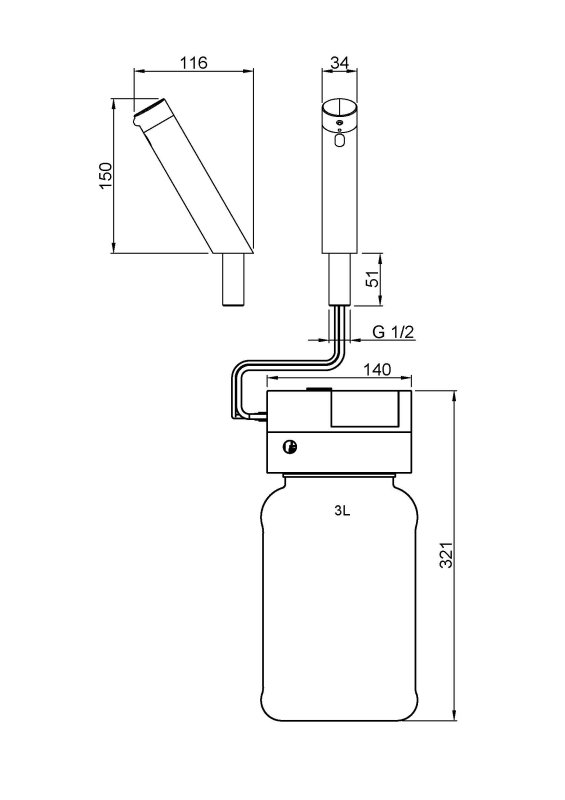 Автоматический дозатор мыла для установки на столешницу. Располагается под небольшим углом над раковиной. Имеет бак для мыла 1500 мл. Оснащен Лазерным сенсором