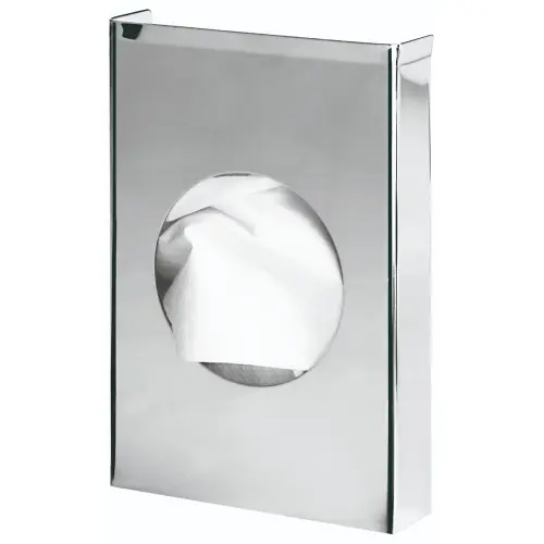 • Диспенсер для гигиенических пакетов со сварной передней и задней пластиной, изготовлен из нержавеющей стали AISI 304, толщиной 1 мм, с блестящей отделкой.